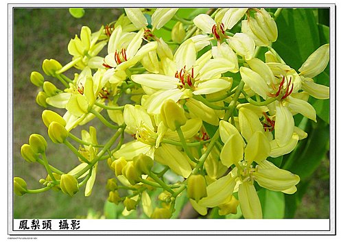 ▲黃色的花為總狀花序成串開放,